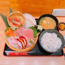 ◆豪快刺身七種盛り 2,198円 ◆ごはんセット(ごはん、味噌汁、漬物) 438円 ◆ごはん大盛り +50円 ※税込 ごはんを酢めしに変更をお願いしてみると、快くOKしてくれました。 刺身は七種のどれも美味しかったです。 醤油が本醸造醤油と甘い刺身醤油の2種類があって、甘い刺身醤油にしてみました。自分の好みの味にどストライク! めちゃくちゃ美味しかったです。この醤油目当てでリピートしたくなる美味しさでした。 ただ、トロっとした醤油で刺身にベッタリと着いて流れ落ちず、着け過ぎ注意です。