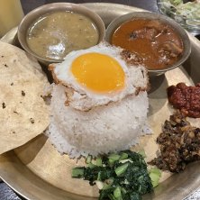 シバスペシャルセット ライス(長粒米) 豆カレー マトンカレー ほうれん草炒め グンデュ(ゥ)ルックサデコ(発酵後に乾燥させた青菜を炒めたもの) チャトニ(チャツネのヒンディー語) パパド(薄手のパン) サラダ フライドエッグ ソフトドリンク(マンゴーラッシーを選択) サクッと夕食を済ませようとサイゼに入ったのですが、待ちが長く断念。近くのインド・ネパール料理店に入ったところ、これが当たりの店でした。セット内容はカタカナが多かったので、Googleで調べてみました。