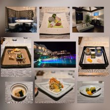 ・焼鯛の青菜寿司 編笠サーモン 帆立と茄子の唐墨かけ 烏賊黄身焼 鯵胡麻酢 くこの実 ・伊勢真鯛 鮪 カンパチ 烏賊 あしらい ・伊勢どり治部煮 半月大根 青葱 粟麩 ・すずき錦秋焼 しめじ 銀杏 紅葉人参 菊と法蓮草となめこのお浸し 酢蓮根 ・海老アーモンド揚 真珠塩 レモン 南瓜 舞茸 青唐 海老煎餅 ・御飯 結びの神 ・香の物 三種盛 ・赤出汁 ・抹茶牛乳寄せ 小豆 栗 メロン ぶどう 柿 2025/10/11 夕食
