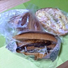 4/24…エビカツサンド お昼の食材買いに行った後、 少し逆方向歩いて、パン屋さん 食べたことないの商品にした! 美味しかった( *´艸`)クスクス