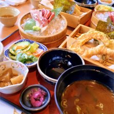 今日の刺身3種盛り定食(マグロ、鯛、ブリ)
