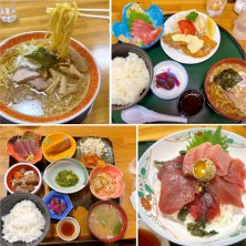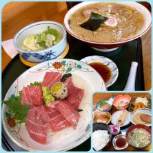 長男夫婦来潟 いつも通りまずはストックバスターズへ キッチン用品物色後、お食事処日の出さんへ 私、本鮪丼のご飯少なめ1250円 長男、日の出定食1100円 お嫁さんとお孫ちゃんはアジフライ定食1250円 私がご飯を少なめにした理由は、定食に付いてくるらーめんを半らーめんからレギュラーにする為だ 燕市はこんな食堂でもサービスで提供される背脂醤油らーめんはめちゃ旨い ラーメン屋さん並みだ らーめん単品で頼むと、一杯650円だ 優しい気持ちになれる らーめんは完飲 ご馳走様でした