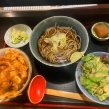 *そば・天丼定食 あけましておめでとうございます🥳✨ 新年最初の外食! 年越しそばで食べたばっかりですが…笑 冷やがけがメインのようなので寒いですが冷やがけで! つるっとした食感がおいしいです。 天丼もエビがぷりぷりで最高でした❤