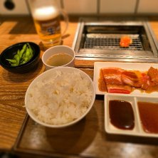 焼肉ライク‼️シメセット30円、ビール枝豆セット付き、無料レモンサワー付き、1080円でした~☺大盛りライス2杯。