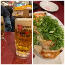 2軒目はエキエバルの餃子屋さん チンチロリンしたらお友達と私はメガジョッキ シャカシャカポテトは私がシャカシャカ ポテサラはお友達がすりこぎで潰して完成してくれました 餃子はネギまみれで登場 飲みすぎたのか、帰りの電車を謎に途中下車 誰もいない駅で30分くらい待って次の電車に乗って帰りました なんで降りたんだ私 しっかりしてくれ!笑