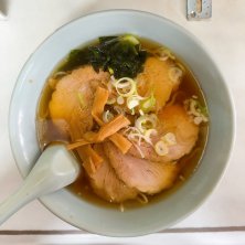 「中華八番@板橋区稲荷台」で「餃子」400円 +「びんビール・大びん」700円 +「チャーシューメン」950円。一人だったおかげでカウンターを確保。とりあえずビールと餃子で一息。厨房は軽い修羅場の様相だ。「チャーシューメン」の注文が入ったので、すかさず便乗。久し振りに食べたが、肩ロースのチャーシューが実に柔らかくて美味い。女将さんがその都度冷蔵庫から取り出して丁寧に切り分けてくれる。仕込んだチャーシューの中から、出来の良いものを別に取っておくのだとか。美味い物には訳がある。ごちそうさまでした。