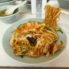 【星期天的午飯】 「中華八番@板橋区稲荷台」で「焼きそば」900円。日曜日のランチは地産地消を旨としている。今日は「ラーメンヒズミ」に行ってみたら「お休み」。不定休だから仕方が無い。よってココに来る。ココの「焼きそば」は「ソース焼きそば」。「上海麺」ではない。麺は硬めに茹でてから水洗いして炒める。「ソース」は「PETボトル」に入った大将が調合した物。シャッキリした野菜、歯応えのある麺、香り高いソース。三拍子揃って強火で炒め合わせると、コレが実に美味いんだよね。自宅では出せない味だ。ごちそうさま。