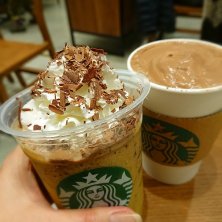 チョコレートwithパッションフルーツフラぺとドリップコーヒーwithチョコムース☺️ チョコフラぺ美味しかった❗ チョコムースも+50円で出来るので他のドリンクにもチャレンジしたいな🎵