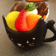 彼が雲仙にキャンプに行った帰りに買ってきたプリン🍮 ねこのカップがとっても可愛い❤️ 3時のおやつ、おいしいです😋