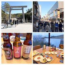 こんばんは。 今日は、旅行2日目でTAOYA志摩に宿泊です。 内宮と猿田彦神社にお参りをしました。 内宮とおはらい町、おかげ横丁は超満員です。 内宮は、以前の初詣での時よりも大勢の参拝者で おかげ横丁も溢れかえっていました。 やっと猿田彦神社に参拝出来ました。手塚治虫の 火の鳥に出てくる猿田彦を知ってからずっと行きたかったので感激です。 夕食は、定番のビュッフェにオールインクルーシブ なのでクラフトビールを飲み比べしました。