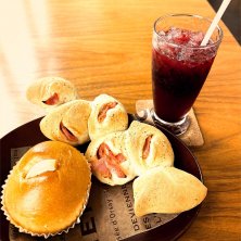 インスタの公式アカウントにフォローされたので行ってみたくなり前回行ってみたら休みだったので今回念願のリベンジ果たしました😉 頂いたのはブラックペッパーの効いたベーコンエピとシナモンりんごにブルーベリージュー ス(刻んだブルーベリー🫐に三ツ矢サイダー入れた感じでした)😋 お店の方の応対が丁寧でお手拭きとお冷がよく冷えてて、ベーコンエピの温めお願いしたらシナモンりんごの方も袋から出してお皿に載せて席まで持ってきて下さいました☺️