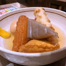 寒い晩のちょい立寄り 【おらが蕎麦】で、 おでん6種盛(700円)しゅんだ大根が下敷きに🤪 仕上げには。ちょい蕎麦(290円) 芋の蕎麦湯割呑みながら、ほっこりと温まる 20251128D