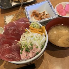 たまたま見つけたお店が衝撃の良店だった 刺身定食も丼も税込1100円 ご飯、あら汁、漬物、出汁茶漬けセルフで食べ放題 駐車場は広いし、待ち客多くても回転がいいのかすぐに案内されるし カウンターから座敷まであるし、ランチメニューは土曜もOK 遠いからなかなか行けないけど、刺身食べたくなったらまた行きたいなぁ