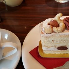 イチジクのタルトとローズティー。 ケーキセット¥700-.と ケーキバイキング¥1500-.がありバイキングにはドリンク2杯までオーダー可。 バイキングとってもお得だけど とりあえず1個食べてみてから美味しかったら次回試してみよ✨ イチジクみずみずしくてサクサクタルトは甘過ぎず美味しかった😋