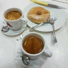 コルドバに到着。 お昼を食べる時間がなかったので、夕飯前にCafe Cortado とドーナツ。