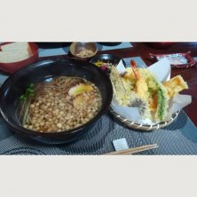 天ぷらそば〜 十割そばながら、細めに切られていつつも、味はしっかりしていて美味しかったです 😊 来るまでちょっと待ちましたが、シフォンケーキとそばのかりんとうがついてきたり、おもてなし感が素敵でした (^-^)