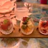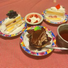 シャトレーゼのケーキ3種 ブルーベリーチーズケーキ モンブラン スペシャルショートケーキ 真ん中はワンコ用ヨーグルトと生クリーム