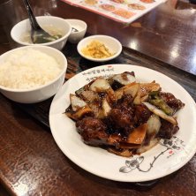 黒酢豚定食 850円 ブタがゴロゴロ入ってて、黒酢が酸っぱくて(当たり前か😅)、久々に酢豚食った〜って気分になりました。 新橋は中華屋さん多いですが、おすすめの一軒です。