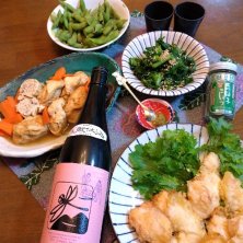 勝男さんシリーズ(笑) とり天 やっぱり 作っちゃったー。 🔹【とり天】大分特産 青柚子こしょう💚 🔹油揚げの袋煮 中身は葱椎茸鶏ひき肉 🔹わさび菜の浅漬け 🔹枝豆 秋の香り 小糸在来←ブランド名 美味しい日本酒に合わせたいメニュー 油揚げの袋煮は じゅわじゅわっとお出汁が 滲みていて美味しかったです。 鮎ちゃんちにあった 柚子こしょうと同じかなぁ? フンドーキン醤油のこの瓶、合わせました