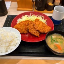 昼夜兼用でかつや。 ヒレカツ定食。ご飯が丼やった!ひぃ! お腹の空きすぎた夫が血迷った結果、メンチカツとイカフライと唐揚げが追加され、お腹いっぱい食べすぎに。