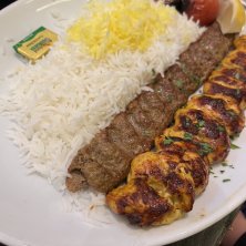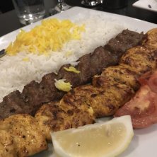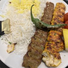 ラム挽肉のケバブとチキン切身のケバブの盛合せ。ペルシャ料理のシグニチャー (*´∇`*)
