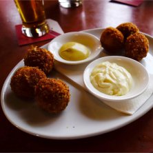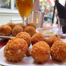 オランダといえばコロッケ. ビールのアテにエビと子牛を一緒にしてもらいました Jede Garnelen und Kalbfleisch Croquetten servieren auf einem Teller zusammen. Elke garnalen- en kalfskroket dienen samen op een bord. Each shrimp and veal croquette serve together on a plate.