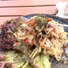 タイランチ、続き。グリーンマンゴーのサラダ♪ レススパイシーでオーダーしたけど、まあまあ辛い♪でも美味しい!