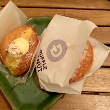 トリュフドーナツのなんとかグレーズとカスタード 渋谷のスクスク(って言うらしいけど、ホントか?)の催事ブースでドーナツ特集のお知らせがインスタでプッシュされてて、行けないから元うちのスタッフの仲良しな子に教えてみたけど ちょうどこの日渋谷のクアトロでライブを観た帰りに(終演が19時半ごろ!)行ったらまだそこそこ売ってた カスタードクリーム美味しい グレーズは甘い 時間が経って溶けてるし生地(ボディ)もふにゃけてる そんな感じ 帰宅した時間がちょい遅かったので 晩御飯、納豆とこれ、、
