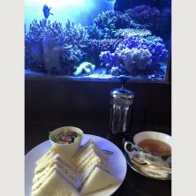 ランチのサンドイッチ 薔薇のシーズンはとても素敵なカフェです。 でも水槽の前のテーブル席も素敵です❣️