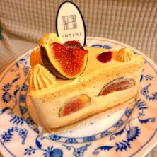 INFINI@東京都 九品仏 いちじくのショートケーキ ショートケーキは季節によって変わるようで、この時期はいちじくみたい 生クリームの色がほんのりベージュ色 食べてみるとこれは和三盆?黒糖?鼻から抜ける香も白砂糖ではないことを物語ります スポンジは粗めのザラザラ系、でもこれが舌触り良くて心地よい 甘さ控えめ、でも奥深い美味しさがずーっと最後まで 美味しいショートケーキを求めて訪店したのでとても満足です💕