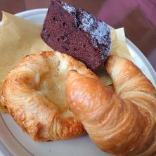 ショコラケーキ アップルクラウン バタークロワッサン 国産小麦と天然酵母を中心にした安心安全のパン屋さん。 初めてのお客さんは1割引♡