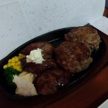 リブロース200g&バーグ110g♪ バーグ焼き方ノーマル、玉ねぎ醤油ソース。