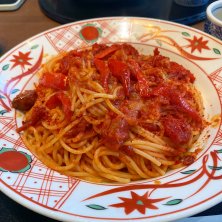モッツァレラチーズと海老のカルボナーラチリトマト🦐