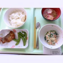 入院3日目 昼食 ⭐️白身魚の竜田揚げ ⭐️ほうれん草の白和え ⭐️そうめん汁 ⭐️白ごはん 今日はいいお天気だから 屋上で日向ぼっこしよ❤️