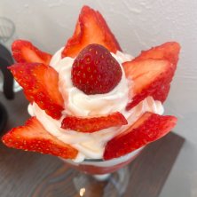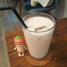 いちごミルクで〆 台風はいつの間にか温帯低気圧へ。 雨も落ち着いたみたいなので、ハシゴスイーツ(笑) 今度はイチゴ農園のカフェへ。 生のイチゴは、もう無いけど、イチゴミルクは夏でもOK。自然な甘味がしみるわ~。