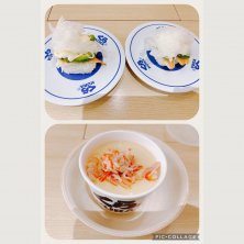 お夕飯。 サラダ。お寿司。 春休み明けましておめでとうございます。 短すぎ💦 わたしも新年度初出場。