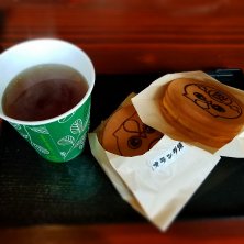 新しくできたふくまる堂という大判焼のお店で、オランダ焼と期間限定あまおういちごとほうじ茶~♪ 素朴な味で美味しかった(*^^*)