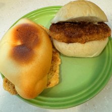 Lunch 25/11/8 Sat ベニマル 焼きチーズカレーパン @203 湯こねバーガー(デミコロッケ) @172