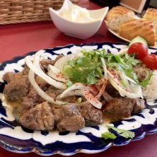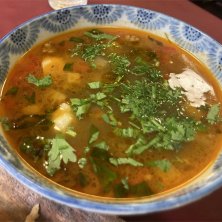 今日は友人と新井薬師へ 昔お互いこの近隣に住んでて、この辺りも自転車とかで一緒に走り回ってた🚲 今も都内にいるものの 友人「新井薬師は随分行ってない」 じゃあ久々新井薬師行こかーと 当時ごはんなら中野に出てたから新井薬師には思い入れのある店は無く 友人が普段食べない🇺🇿ウズベキスタン料理店へ 毎度持ち帰りノン(パン)ばっかり載せてたけどやっとの料理🤣 ・チュチュワラ ちび餃子この店はスープに入って ・キーマシャシリク ラムひき肉の串焼き ・プロフ 炊き込みごはん ・ノン パン ↓