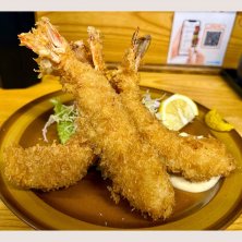 今日のお昼は船橋中央卸売市場で、海老ふりぁ赤い三連星😃 大きな海老が3本!プリプリで美味しいですよ😋