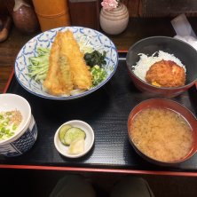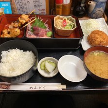 いつも高校の会議弁当でお世話になっているめんどりさん。たまには熱々が食べたいなと思ってお昼ごはんを頂きにきました。 写真はカキフライメンチ御膳なんですが、一人前牡蠣3個のところ在庫が2個しかなかったとのことで、代わりにハムカツをつけて頂きました。色々食べられて却って得した気分。