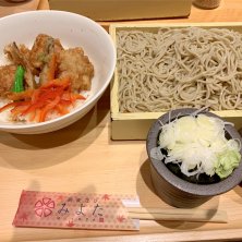 豚天丼と蕎麦のセット 行列蕎麦店です