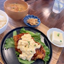 門仲でランチ〜♪ 鳥サンドと迷ったけど〜 チキン南蛮セットに。 チキン南蛮も美味しかったけど… お味噌汁が、めちゃ、美味しかった😋 12時前に行ったから、すんなり入れたけど、ちょっとしたら、並んでたよ〜😜
