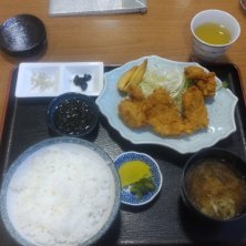 日曜日は知多半島へ温泉&美味しいもの 食べに行ってきました。 新鮮なお刺身食べたかったのですが 一緒に行った人が魚臭いのが苦手で あまり臭わなそうなこちらのお店に。 どうもお寿司がメインっぽいのですが 迷った挙句、私はお刺身定食に。 一緒に行った人はフライ定食にしました。 おつまみでタコの唐揚げも注文。 フライ定食は大きな海老2本、キス2枚 野菜2枚とゴージャスでしたが 期待をしていたお刺身定食がイマイチで…。 タコの唐揚げも何だか残念な感じでした😢