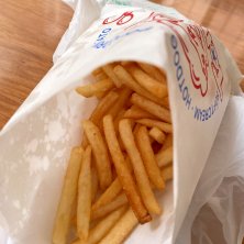 ホットドッグが主役のように見えますが、トミーズと言えばやはりフライドポテト! 良心的な価格で山盛りのポテトを提供し続けている、名谷のパワースポットです。スピリチュアルな意味ではなく。 久々に食べたけど、アラフォーにはキツいですな!この量! だけど、その立ちはだかる壁みたいな所が良いのです(* ´ ▽ ` *) これを飲むように平らげてしまう、身軽な地元の男子学生達よ… そんな無茶が通用するのは、20代後半までだゾ☆ おじさん、少々胸やけですよ…(←何故か嬉しそう)