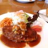 ブラックアンガスビーフのカットステーキ定食 和風ソース サラダと生卵