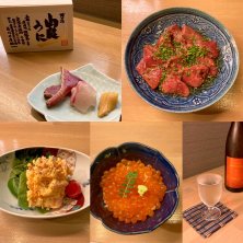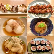 ◆鯛、伝助穴子、ツブ貝のお造り ◆ホタルイカの炭焼き ◆新玉ねぎお出汁バター ◆生きもしっとり煮 ◆揚げ出し白子 ◆鉄火巻き