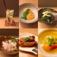 ◆すだち酎ハイ ◆ホタテの酢味噌あえ ◆モロヘイヤと長芋のお浸し ◆お造り盛り ◆手羽先山椒煮 ◆あさりの出汁茶漬け