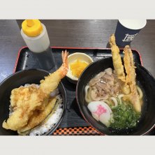 ミニかしわごぼ天うどんとミニ大海老天丼のしあわせセット😋