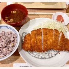 ロースかつ定食 150g 初来店。 カツは大きくて薄いタイプ。 衣はしっかりとした硬めの食感。 これは好みが分かれるところ。 ソースはオリジナルで、甘酸っぱい。 卓上にあるドレッシングも柑橘系のさっぱり味で、 キャベツが爽やかになった。 ご飯は選べたので雑穀米。 あたりまえのように味噌汁が赤だしで、明太子がついてるというのが面白い。 なんで赤だしなんだろう? 味噌カツ食べたくなるじゃん。